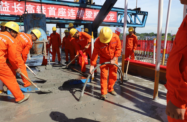 常益長(zhǎng)高鐵項(xiàng)目首座連續(xù)梁成功合龍 “路橋湘軍”進(jìn)軍高鐵市場(chǎng)顯身手
